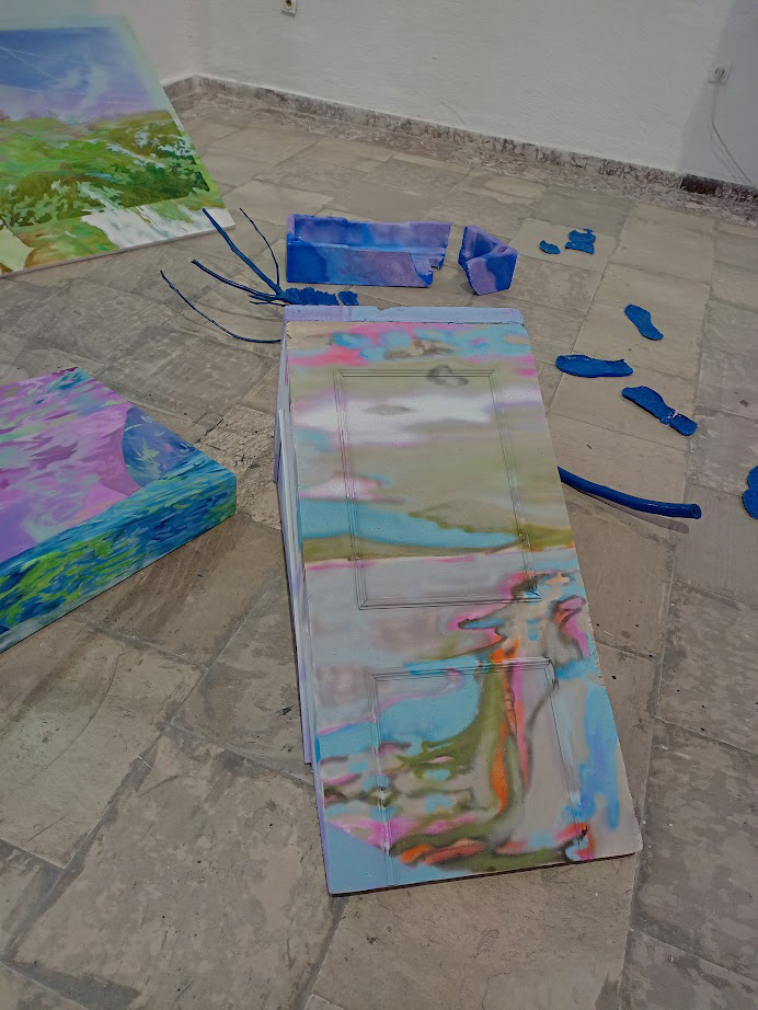 а препрати думата „останки“ към артефакти от античността, но също така и към употребата на предмети от дълготрайни материали. Но най-вече, доколкото това е изложба с живопис, заглавието може да се чете като интерпретация на стария израз „живописни руини“. Тази знакова за художническата практика формула обяснява простия метод, чрез който изборът на обект диктува почерка на изобразяване. Както и обратното – художникът с афинитет към въздушната перспектива и движението в контурите на образа избира своите обекти в процес на промяна на формата. Тук, разбира се, 21-ви век добавя и друг вид прозорец, през който художникът може да гледа пейзажа. И да осмисля по нов начин понятието „руини“, да го свърже с „останки“, защо не и с „разруха“.Даниела Радева